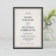 This old money inspired black and ivory wedding invitation pairs timeless serif typography with a coordinating black reverse side featuring a discreet QR code for modern convenience. The bold black border frames the refined layout, creating a sophisticated black tie aesthetic rooted in tradition yet elevated for today’s celebrations.