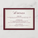 This elegant burgundy and ivory wedding details card features a classic minimalist layout with a rich maroon border and timeless serif typography. Designed to coordinate seamlessly with the full invitation suite, this insert provides directions, accommodations, and additional wedding information in a clear and sophisticated format.