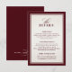 This elegant burgundy and ivory wedding details card features a classic minimalist layout with a rich maroon border and timeless serif typography. Designed to coordinate seamlessly with the full invitation suite, this insert provides directions, accommodations, and additional wedding information in a clear and sophisticated format.