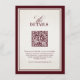 This elegant burgundy and ivory wedding details card features a minimalist layout with a rich maroon border and refined typography. The centered QR code allows guests to instantly access your wedding website for ceremony details, reception information, travel guidance, and accommodation updates.