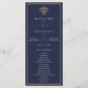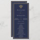 Elegant old money navy blue wedding program with classic serif typography and refined gold accents. Editable in the Zazzle editor.