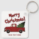 Old red chevy truck and Christmas tree custom keychain gift. Old vintage Chevy truck hauling a Christmas tree. Fun design for the holidays.