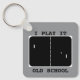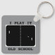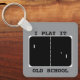 Nyckelkedja för anpassade för spelare i old school som blåste äventyr med uppringning, konsoler och till och med 8 bitar! Retro-bilden visar ett enkelt 2D-paddel- och boll-spel. Standardtexten lyder: "Jag spelar upp den old school" - men du kan anpassa till önskad spelar ingen roll!