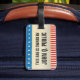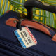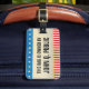 Ett bagagemärke med old school stars och stripes-design, som har en vintage grungande utseende.