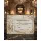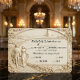 Set the tone for your formal estate wedding with this artistic design featuring a monochromatic ivory palette and a classical faux stone sculpture aesthetic.This design utilizes a trompe l'oeil technique to simulate the depth and shadow of a 3D bas-relief sculpture. The scene depicts a romantic couple walking along a cobblestone path toward a distant country chapel, framed by an ornate architectural arch and intricate rose borders. The color palette is strictly monochromatic, utilizing shades of cream, ivory, and soft grey to mimic the look of carved limestone or plaster. The typography features a formal black serif font for the header, paired with an elegant script, ensuring high contrast against the light stone-effect background.