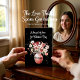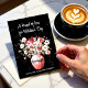 Detta vackra Alla hjärtans dagskort för en barndotter till tonåring eller vuxen fångar en perfekt blandning av konst och värme. En handmålad vattenfärg vas fylld med rosa blommor och hjärta ställs in mot en fet svart bakgrund, som förstärks av delikata färgstänk. Ett unikt sätt att påminna henne om hur djupt älskad hon är.