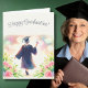 Firar framgången med denna fantastiska AI-genererade teckning med en äldre kvinna som bär en marin studenten-gryning och som håller sin examen.