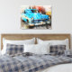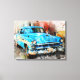 Ein blauer Oldtimer in Havanna auf Kuba in Aquarell