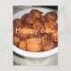 "Oliebollen" nytt årskort. Oliebullen är ett typiskt nederländskt nyårsafton. Text: "Gott nytt år".