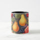 Den här charmerande mugg har en härlig design av olika mogna frukter som är kapslade mellan lush grönt löv och spännande blommor. Den detaljerade illustrationen omfattar päron, druvor, vattenmeloner och bär, som alla är ordnade i en harmonisk, naturinspirerad sammansättning. Vintagen botaniska stil lägger till en aning tidlös elegans i din drickvarusamling mot en mjuk bakgrund. Perfekt för morgonkaffe eller kvällsteé, det ger varje sipp en känsla av naturskönhet. Ett underbart och funktionellt biet som förvandlar vardagliga stunder till något speciellt.