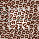 Olika former av krona i bruna cirklar på benvit bakgrund, sömlös upprepning av mönster