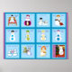Den här poster har olika streck för olika Snö-mappsrutor, konst av Kristie Hubler, har 12 lappar av fyrkanter, som var och en har olika snö-"folk", snögubbe, snö-kvinna, snö-barn, snögubbar eller snö-familjskonfigurationer, med ord art/slogan/text för att stimulera konversationer