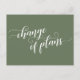 Med det här enkla kortet kan du välja bakgrund färg (om du vill ändra något!) medan du har det här fantastiska teckensnittet. På fronten står det "ändrad planering" med hjälp av ett söt-skript med snurra och vinkara. I baksidan finns platshållare för mallar med information om matchande accent ord med calligraphy-teckensnitt. Använda den här mallen fält för att lägga till dina personuppgifter och ändra mitt förslag till formulering till kostym för dina behov och din situation. 99 //