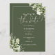 Den här elegantens oliv grönt inbjudan till den botaniska gröna blommigten spara-till-datum kan vara personlig med din information i chic typografi med din bröllop webbplats QR-kod och information på baksidan. Designad av Thisisnotme©