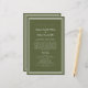 Elegant, ett minimalistiskt oliv grönt- och vitboksprogram i bröllop har en enkel modern utformning med en dubbla som ramar in gräns i skarp vit på trendigets oliv grönt bakgrund. Traditionell, klassisk formulering ger en tidlös sofistikering. Anpassa ceremonin i bröllop till dina gäster i trendigets skript och brev. Kortets baksida matchar med vita bokstäver på en oliv grönt bakgrund och det handlar om din bröllopsfest. Om du vill ha optimala resultat ersätter du mallinformationen med din egen information som lämnar mellanrummet mellan stycken som i exemplet. Kapitalisera och använda allt nedre fodral där så anges. Kontakta mig gärna på invitationsuites@gmail.com eller med meddelandefunktionen om du har frågor om detta eller någon av våra produkter eller har en begäran från anpassningsbar färg.