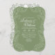 Olika och elegant oliv grönt bröllopsinbjudningar har en vintage botaniskt sofistikerad känsla. Anpassa färg och text för att göra dem till egna! Perfekt för ett romantiskt bröllop i oliv grönt och vitt.