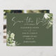 Den här eleganten oliv grönt botaniska gröna blommigt bröllop spara-datum-kort kan vara personlig med din information i chic typografi med ditt speciella foto på motsatt sida. Designad av Thisisnotme©