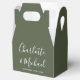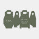 Elegant bröllop-förmånslåda med chic namnteckning skriptdatum namn och speciella datum på oliv grönt bakgrund. Du kan anpassa dig med ditt eget tack till ditt meddelande på motsatt sida. Ett perfekt sätt att tacka gästerna! Designad av Thisisnotme©