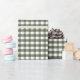 Oliv grönt gingham mönster. Grönt och vit gingham mönstrade papper förpackning.