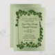 En underbar inbjudan till gräns av grönt löv. Lägg parets första namn på ena sidan med all information om bröllop och all hälsning från mor och far i bruden. Trippelkontrollera all text.