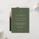 Den här oliv grönt minimalistiska bröllopsinbjudan i monogram kan vara personlig med din information i chic typografi och ett speciellt foto på motsatt sida. Designad av Thisisnotme©