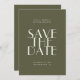 Sommarskogar, modern enkel typografi, minimalistisk bröllop spara datum med foto + QR-kod på baksidan i skuggor av mörkens oliv grönt och sage grönt färg. Kontakta mig om du behöver fler artiklar.