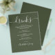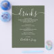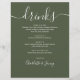 Oliv grönt Modern Script Bröllop Drinks Meny