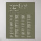 Denna oliv grönt utskrivbara sittplatskarta i chic poster perfekt för ett enkelt bröllop. Detta tecken kan användas för att organisera gästerna i alfabetisk ordning eller genom bordsnummer genom att ändra namn i rubrikerna. Skogsodlingen har en unik och snyggt bohemisk typografi i en minimal grönt av skogsskogen i färg. Det här tecknet i bröllop innehåller tillräckligt med utrymme för upp till 120 gäster. Ge plats åt fler (eller färre) gäster genom att klicka på knappen "anpassa" och minska eller öka storleka på teckensnittet. Förutom varje gästs placering, anpassa detta tecken med parets namn och bröllop-datumet.