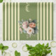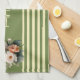 Oliv grönt överkant med Beige Rand Blommigt Kökshandduk