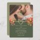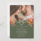 Fira bröllop i stil under hösten med den här roliga bröllopsinbjudan, som innehåller ett romantiskt par foto, en pulserande orange och ett symboliskt guld-rep. Tonen på oliver och sage-grönt skapar ett jordnära, modernt vib, medan elegant-typografi och en byggt OSA med QR-kod erbjuder både charm och bekvämlighet. Perfekt för utomhus- eller landskapsfall är fallande bröllop med en chic.