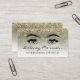 This glamorous modern business card features a sketch of two eyes with elegantly arched eyebrows in black on a background image of olive green marble. A sprinkling of gold faux glitter decorates the top edge of the card. Personalize it with your name in black handwriting-style script and title and contact information in black sans serif font.
