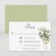 Svarskortet i bröllop är en del av Olive Gren Bouquets bröllopssviten med kort som skapats av enbart Farmhouse Press. Mjuk rosa rosett band samlar grenar av vattenfärgad olivolja av grenar och sänder ett budskap om värme och hem i denna rustikdesign.