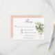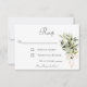 Svarskortet i bröllop är en del av Olive Gren Bouquets bröllopssviten med kort som skapats av enbart Farmhouse Press. Mjuk rosa rosett band samlar grenar av vattenfärgad olivolja av grenar och sänder ett budskap om värme och hem i denna rustikdesign.