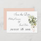 Detta kort från bröllop spara datum är en del av Olive Gren Bouquets bröllopssviten med kort som skapats av enbart Farmhouse Press. Mjuk rosa rosett band samlar grenar av vattenfärgad olivolja av grenar och sänder ett budskap om värme och hem i denna rustikdesign.