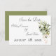 Detta kort från bröllop spara datum är en del av Olive Gren Bouquets bröllopssviten med kort som skapats av enbart Farmhouse Press. Mjuk rosa rosett band samlar grenar av vattenfärgad olivolja av grenar och sänder ett budskap om värme och hem i denna rustikdesign.