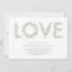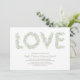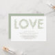Olive gren i brev i skuggor av grönt-grått utlöser KÄRLEK för en perfekt fruktodling i bröllop. Anpassa kortformen, teckensnittet, teckensnittet färg eller färg på andra sidan.