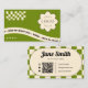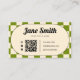 Ett retrosöt affärskort med oliv grönt Y2K-checkers och funkyar. Helt redigerbart - lägg bara till din information och ditt besök! Perfekt för kreativ-studior, handgjorda butiker eller någon som säger "hej" i stil.