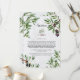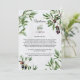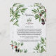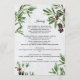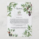 Ett vackert mönster med löv och oliver av rustik på den vita grekiska ön stil i Medelhavet tvättar vägg. En elegant vintage bröllop välkomnar perfekten av det italienska programkortet för grekiska öar, italienska och stil i Medelhavsområdet. Baksidan av kortet visar ett minimalistiskt monogram. Det finns också möjlighet att matcha bröllopsinbjudningar och andra artiklar i kontorsartiklar.
