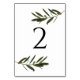 Denna utformning omfattar löv och grenar. Olivets vackra gröna löv ger en komplimang till elegantens svarta moderna form som omger datumet i bröllop. En perfekt som förenar modern och chic med rustik färg. Oliv grönt, svarta och vita är en perfekt som passar ett Medelhavstemat bröllop. Unik utformning av bordsnumret i bröllop med modernt inslag. Det finns också möjlighet att matcha bröllopsinbjudningar och andra artiklar i kontorsartiklar. Anpassa antalet och köp varje bord individuellt beroende på hur många bordsnummer du behöver.