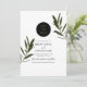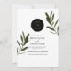 Denna utformning omfattar löv och grenar. Olivets vackra gröna löv kompletterar elegantens svarta moderna form som omger titeln. En perfekt som förenar modern och chic med rustik färg. Oliv grönt, svarta och vita är en perfekt som passar ett Medelhavstemat bröllop. Unik bröllop spara datum-kortdesign med modernt inslag. Det finns också möjlighet att matcha bröllopsinbjudningar och andra artiklar i kontorsartiklar.