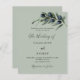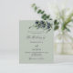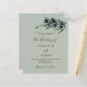 Oliv grönt bakgrund som är dekorerad med oliver och löv av oliver. Anpassa och lägg till namn och detaljer. Bakåt: oliv grönt bakgrund. 1 lakan = 1 inbjudan tryckt kant till kant.
