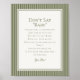 Olive Martini Green Striped Baby Shower Game Poster