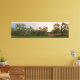 Kanvastryck av många oliver träd och vissa röda vallmoblommor i en olivodling i träd vid solnedgången i Italien. Underbar dekoration på väggen!