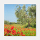 Fotomagnet Souvenir med en gammal oliv träd i en vallmo fält-fullt med levande röda vallmo i ett landskap i Toskana, Italien.