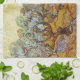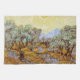 Olive Träd med gult himlar och sol. Vincent Willem van Gogh. Liggande i varma gulter. Stor trädgård med stort träd. Bergen i bakgrunden. Det finns en stor ljusstark sol i himlar. Reproduktion av berömd av konstverk bilder på det offentliga området.