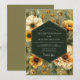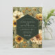 Immerse your special day in vintage botanical elegance. This design features a lush arrangement of painterly anemones in shades of cream and golden ochre, set against a backdrop of muted olive green. Soft sage foliage and delicate wildflowers complete this romantic, earthy composition for a timeless affair.