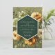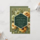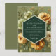 Evoke an atmosphere of vintage romance with this earthy and elegant design. A painterly arrangement of golden marigold anemones and cream blossoms is beautifully set against a muted olive green backdrop. Sprigs of delicate foliage add a touch of organic meadow charm, perfect for a sophisticated botanical union.