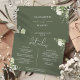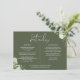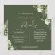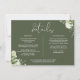 En elegant olivgrön blomsterbröllopsdetaljer informationsfäste personifierad med era speciella detaljer i stilfull typografi och era namn och bröllopsdatum på baksidan. Designad av Thisisnotme