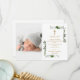 Detta eleganta olivgröna akvarell grönska dop dopceremoni tack-kort kan anpassas med ditt speciella barnfoto och tackmeddelande i chic typografi. Designad av Thisisnotme©