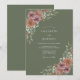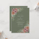 Denna design har en djup olivgrön bakgrund prydd med frodiga botaniska arrangemang. Dämpade mauve- och terrakotta-dahlior är parade med silvrigt eukalyptus och ömtåliga vita vaxblommor. Det melankoliska färgspektrumet skapar en organisk och romantisk atmosfär perfekt för en rustik höstlig eller skogig miljö.